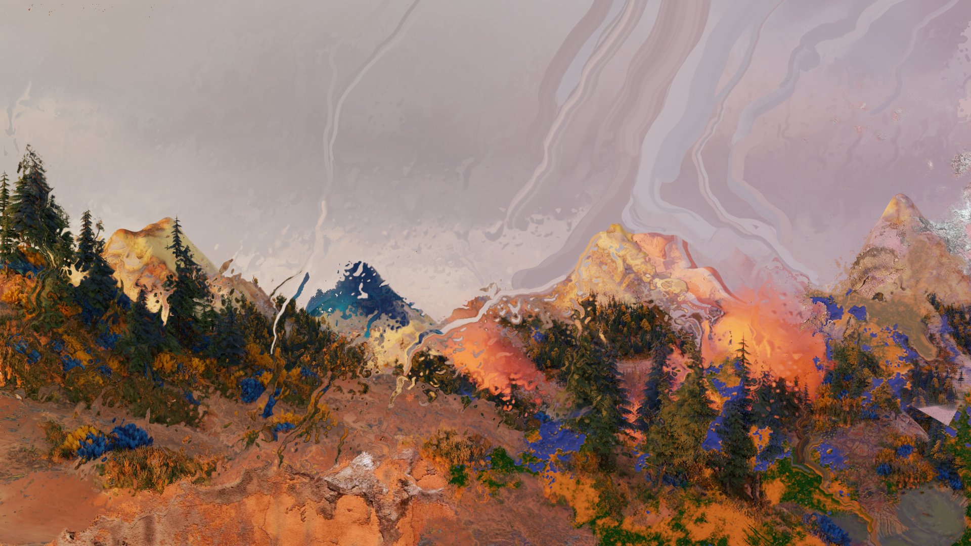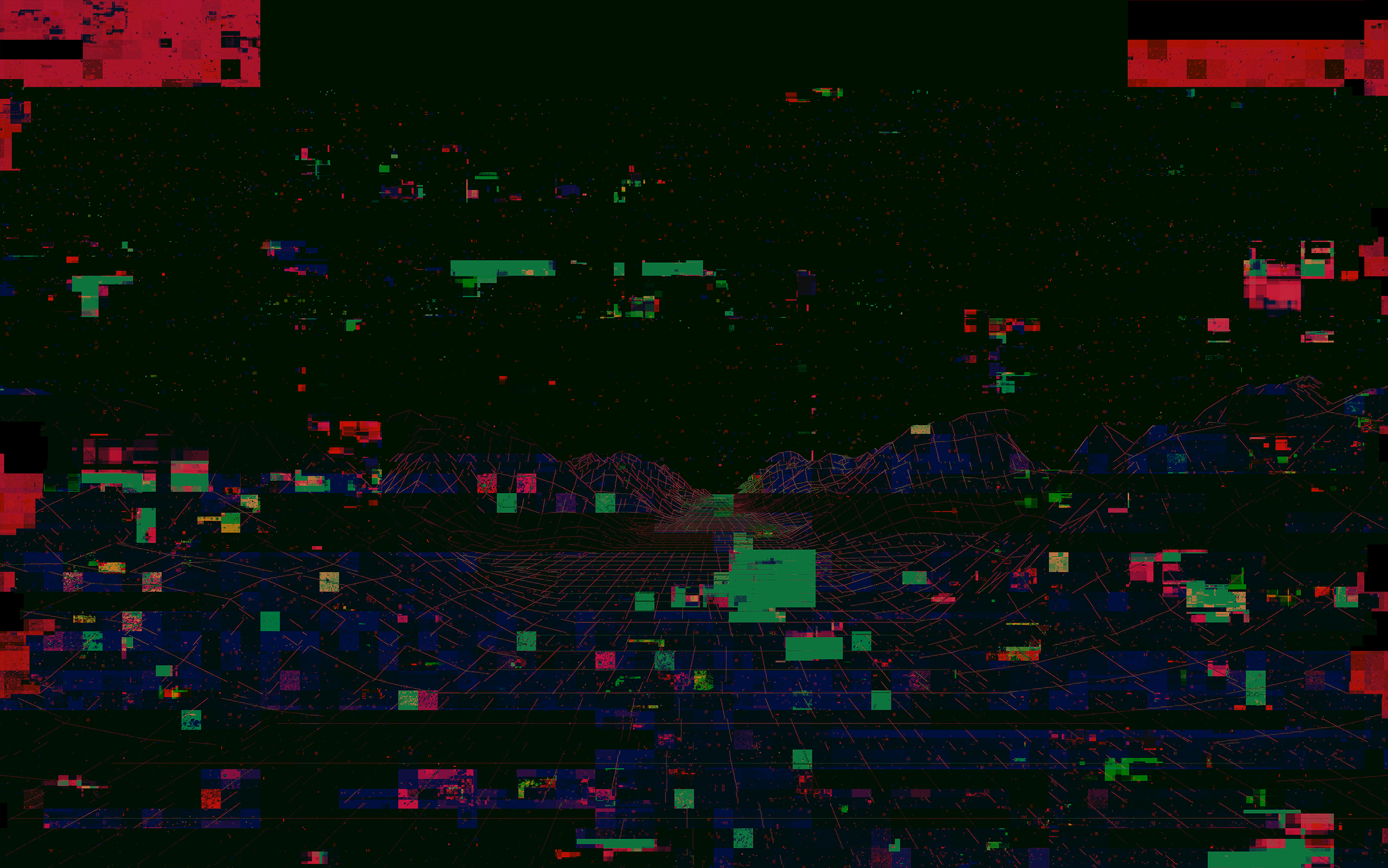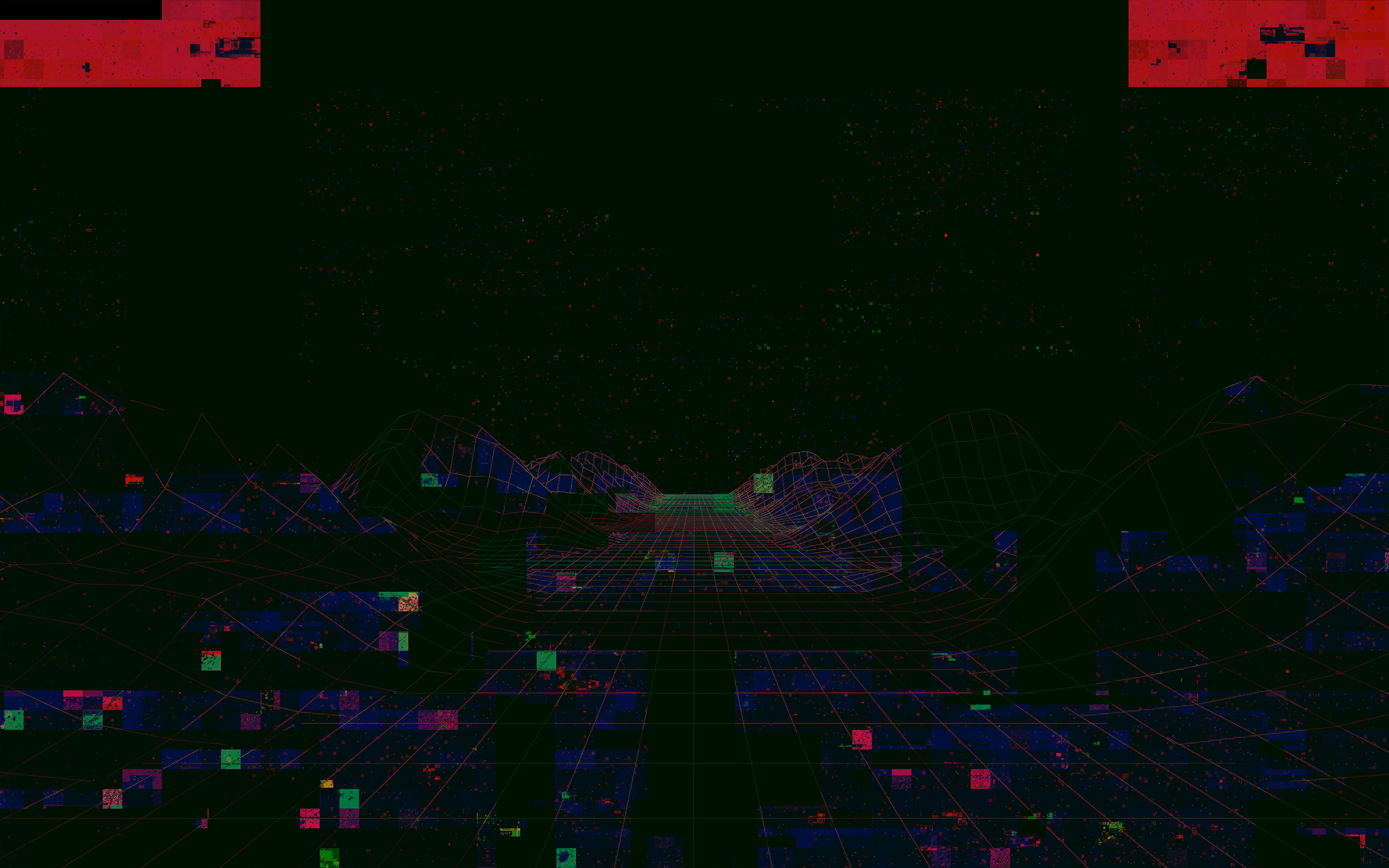 The Parallax Test is an electronica experimental track, evolutive music, a geek stuff based on algorithm, like "let the music plays by itself". The visual process is quite the same. Set up a basic low-poly landscape visual, pass it into a glitch plugin in After Effect, export a series of frames, and choose one.