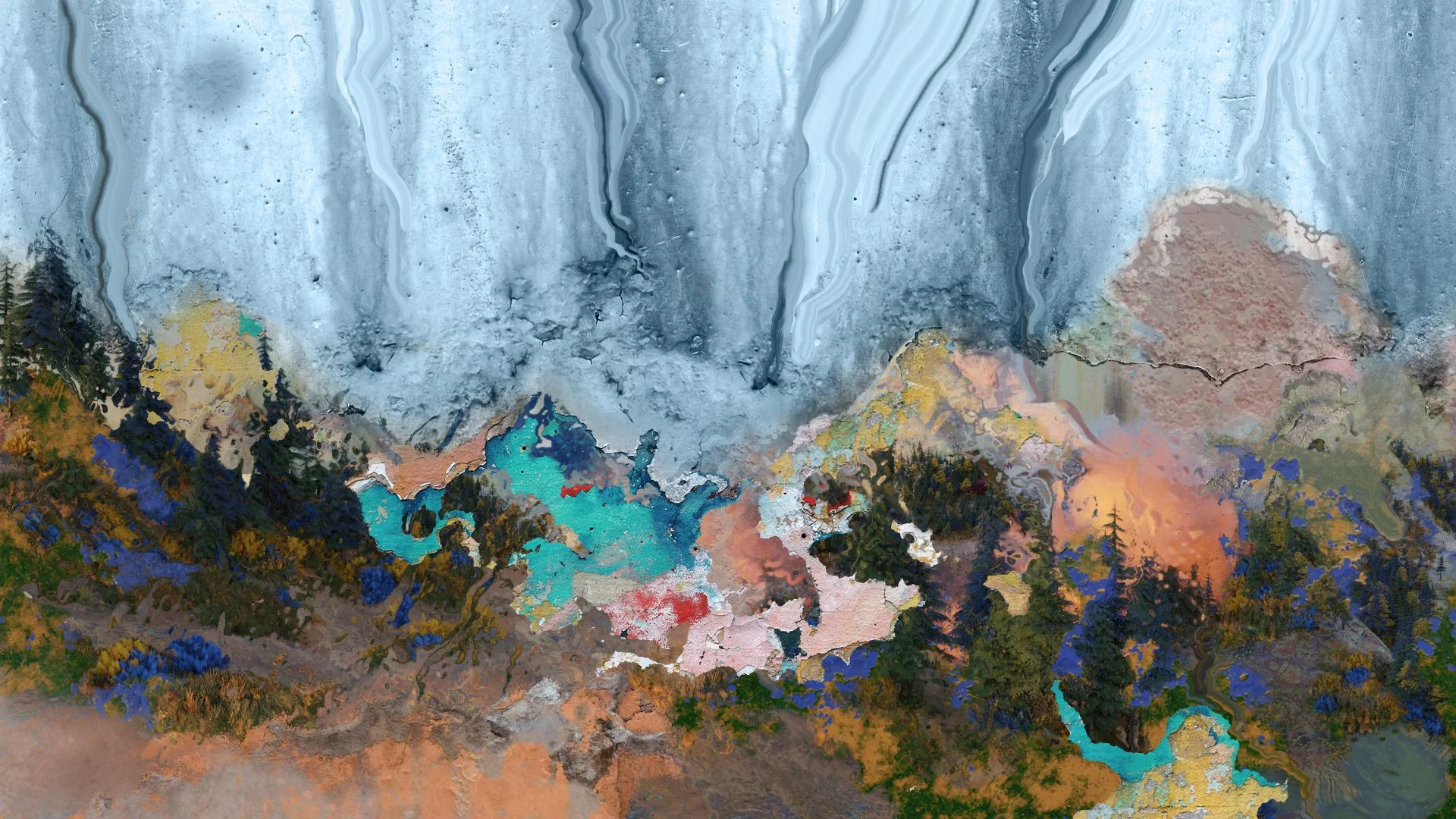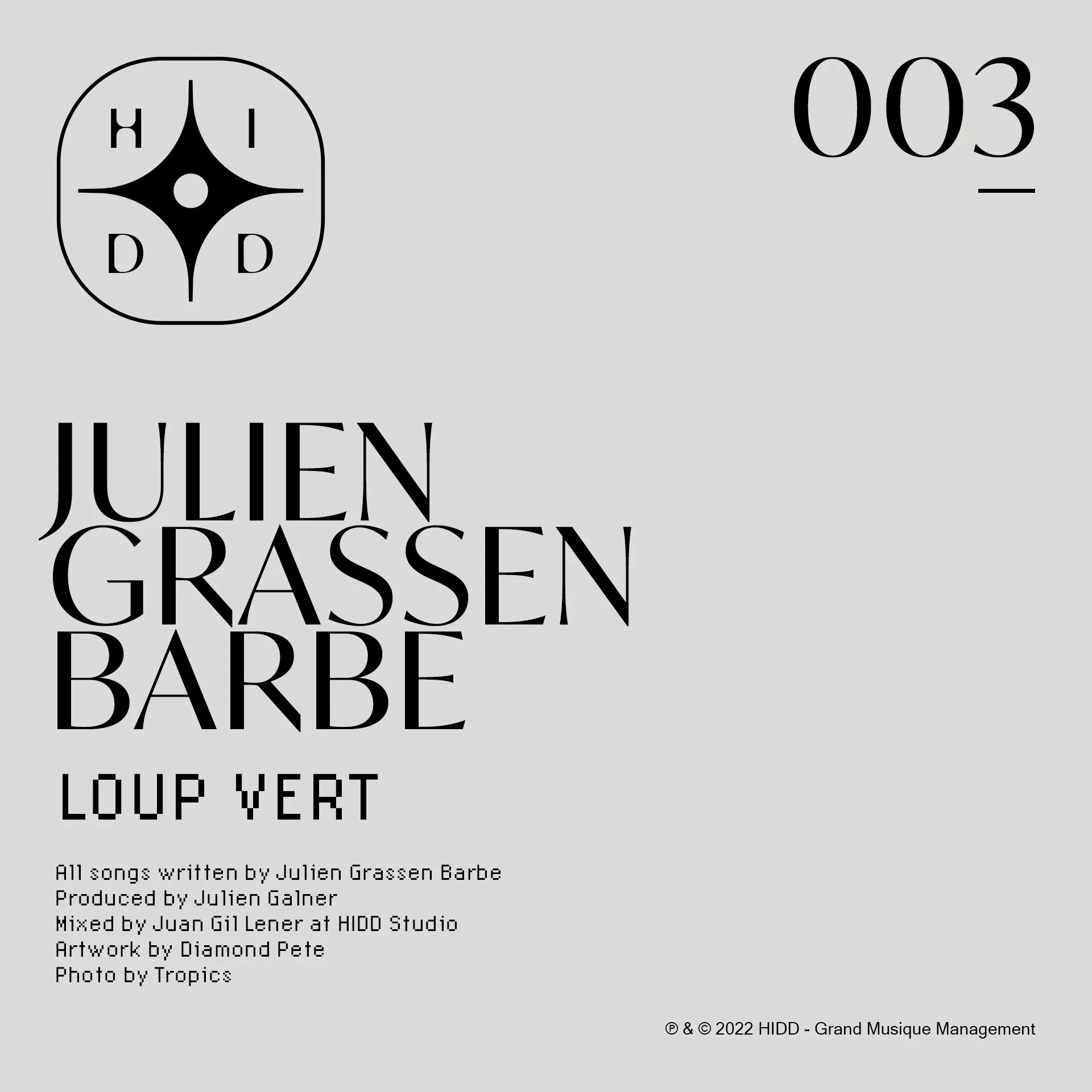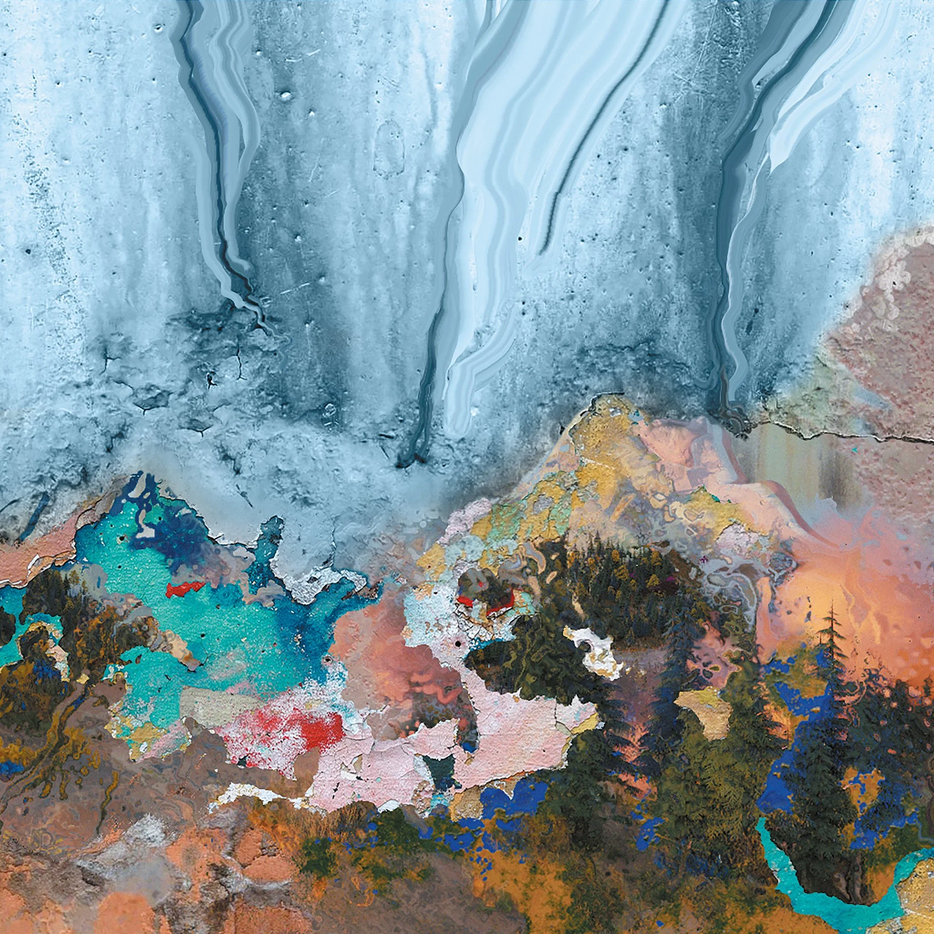When listening to 'Loup Vert' and discussing with Julien Grassen Barbe, we talked about his native landscape region, the Pyrenees, as well as the influence of Middle East sounds in the track 'Bashevis' due to his Jewish confession. He also told me that he loves the patterns created by rain on a window, its poetry, and the path between abstract and figurative forms that textures on a worn wall can create. A path that relates perfectly to a possible pun on the album’s name which can be heard in French as "open". Thus, creating an abstract landscape resuming all of this notions was pretty obvious to us.