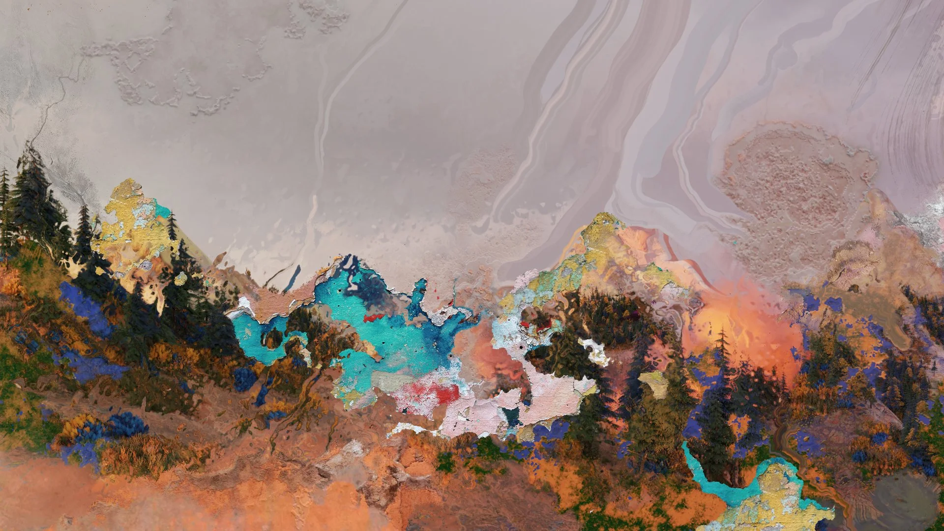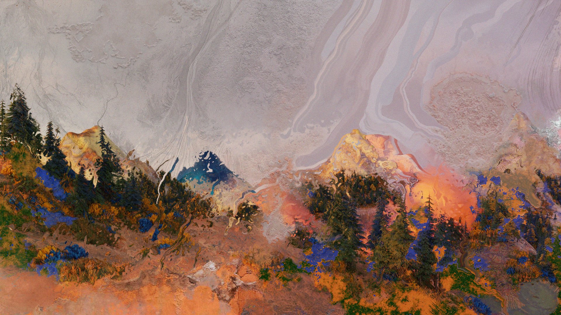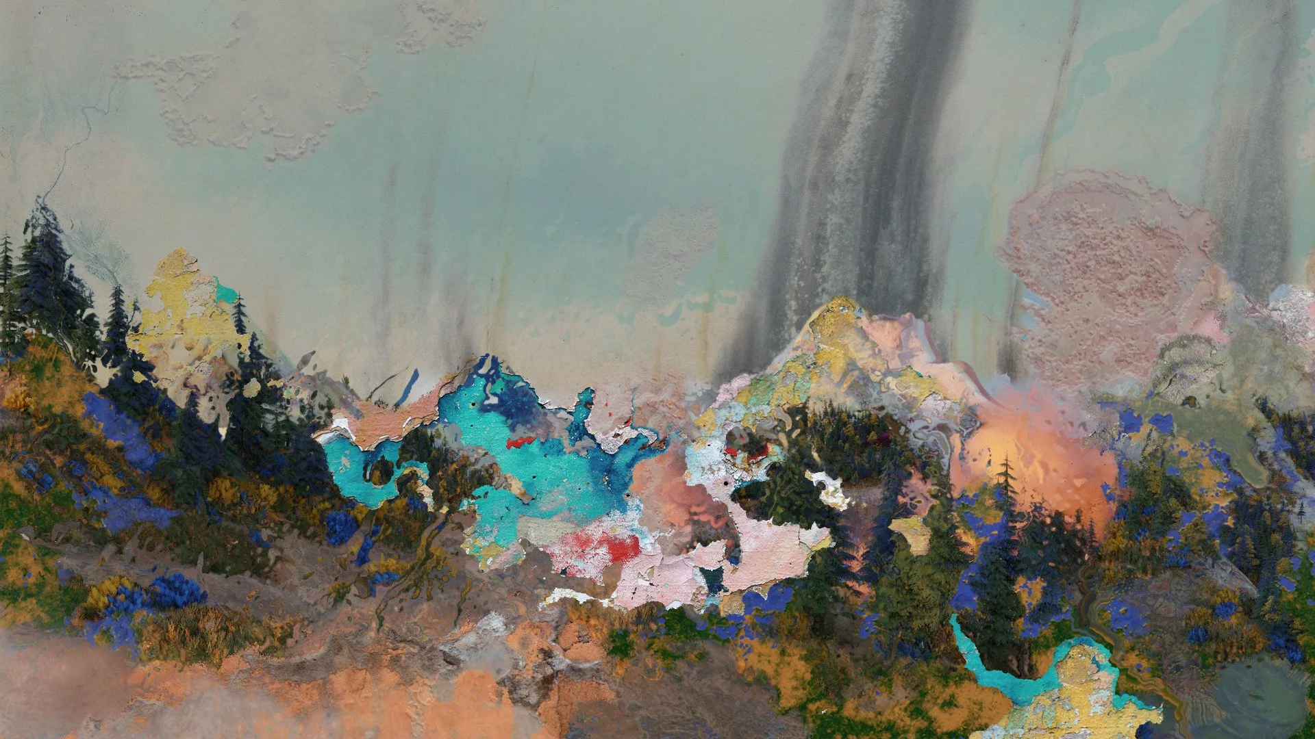 When listening to 'Loup Vert' and discussing with Julien Grassen Barbe, we talked about his native landscape region, the Pyrenees, as well as the influence of Middle East sounds in the track 'Bashevis' due to his Jewish confession. He also told me that he loves the patterns created by rain on a window, its poetry, and the path between abstract and figurative forms that textures on a worn wall can create. A path that relates perfectly to a possible pun on the album’s name which can be heard in French as "open". Thus, creating an abstract landscape resuming all of this notions was pretty obvious to us.